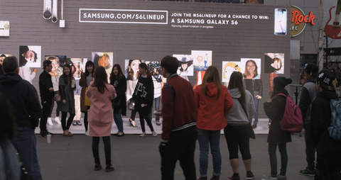 A giant interactive screen allowing fans to virtually lineup for a new smartphone.