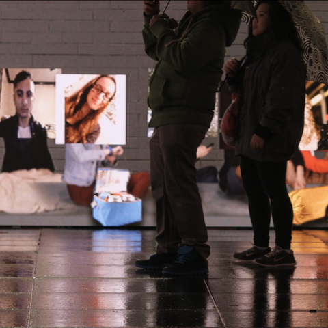 WXM also designed software to allow the avatars to react to their environment. When music played they danced, when it rained, they raised umbrellas and overnight they slept in sleeping bags.